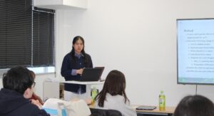その後、本研究所を訪れている2名のインターン学生が研究の進捗状況や滞在中の様々な経験についての発表を行いました。