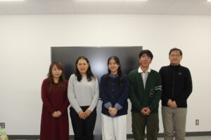 左より東田千尋所長、Kesinqe Netsomboon先生、Wiroonluck Phonpahaさん、Tanakrit Saengernさん、庄司翼教授