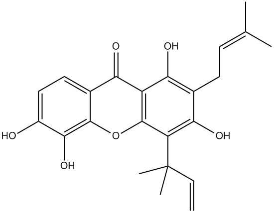 | IUPAC名 | 4-(1,1-dimethyl-2-propen-1-yl)-1,3,5,6-tetrahydroxy-2-(3-methyl-2-buten-1-yl)-9H-Xanthen-9-one |