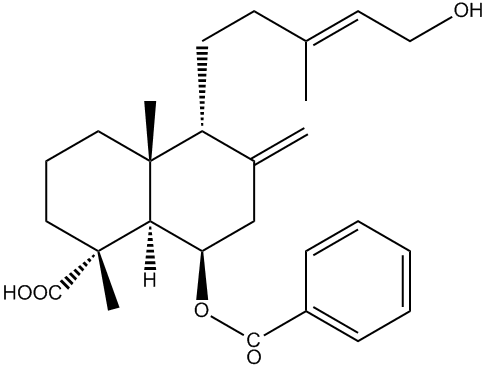 IUPAC名(1R,4aR,5R,8R,8aR)-8-(benzoyloxy)decahydro-5-[(3E)-5-hydroxy-3-methyl-3-penten-1-yl]-1,4a-dimethyl-6-methylene-1-Naphthalenecarboxylic acid